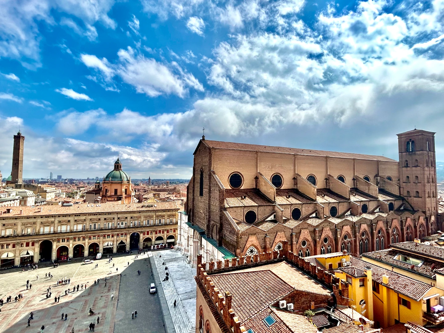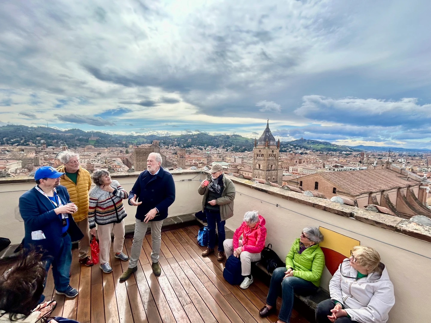 Per la seconda colazione ci attende un'esperienza davvero unica: una terrazza sulla cima della Torre Prendiparte con un panino gourmet a base di mortadella dop bolognese, buon vino sincero ed un dolce della tradizione. Sarà un'ottimo inizio circondati dalle più belle vedute di Bologna e su una delle torri per cui la città è famosa nel mondo.