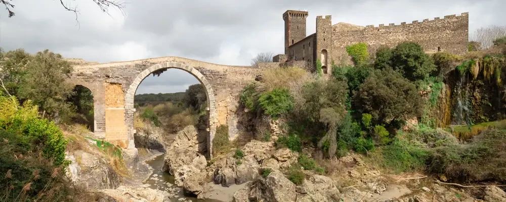 Le visite proseguono con il Castello della Badia, attuale sede del Museo Nazionale di Vulci, e con l’ardito Ponte dell’Abbadia. Nel cortile del castello sono esposti importanti elementi scultorei, mentre nelle sale museali si possono ammirare vasi, oggetti in bronzo e gioielli provenienti dalle necropoli circostanti. Il Ponte dell’Abbadia, situato presso Vulci nel territorio di Montalto di Castro, è un’imponente struttura di origine etrusca realizzata per superare il profondo canyon scavato dal fiume Fiora. Riutilizzato e ristrutturato in epoca romana, divenne un nodo strategico della viabilità locale; nel Medioevo, sopra la struttura antica, venne edificato il castello, che inglobò il ponte rafforzandone la funzione difensiva e di controllo del territorio. Oggi rappresenta uno dei simboli del Parco Archeologico di Vulci ed è uno straordinario esempio di continuità d’uso dall’età etrusca al Medioevo. La visita prosegue con la Tomba François, il cui ingresso equivale idealmente a varcare una soglia nel tempo. Non si tratta soltanto di una sepoltura, ma di una vera e propria narrazione per immagini, concepita per essere “letta” camminando, parete dopo parete. I colori rossi intensi, neri profondi, ocra caldi sono ancora oggi sorprendentemente vividi e danno l’impressione che le figure possano animarsi da un momento all’altro. Ciò che rende questo luogo particolarmente affascinante è il suo carattere intimo e potente: non semplici scene decorative, ma scelte precise, quasi “politiche”.